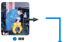 接单 → 拆检 → 报价 → 清洗 → 磨损件修复 → 损坏件更换 → 安装 → 调试 → 测试合格后出厂